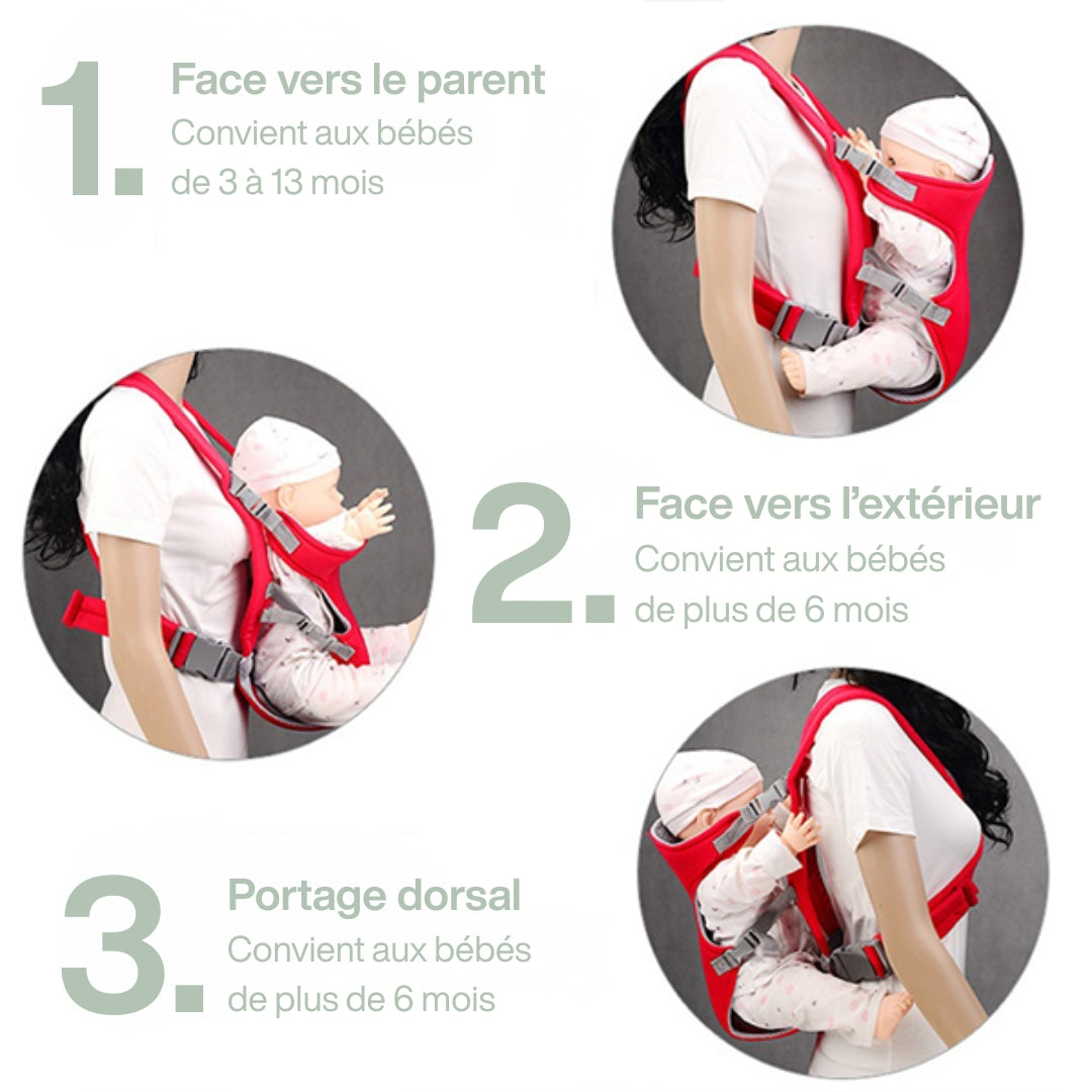 Il permet un portage ventral, dorsal ou sur la hanche, selon vos besoins et l’âge de votre bébé.
